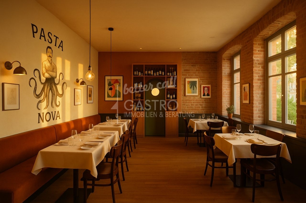 Von Kochschule bis Fine Dining in Charlottenburg - diese Fläche kann alles! Die angebotene Gastronomiefläche umfasst rund 221 m² und überzeugt durch eine klare Raumaufteilung mit mehreren Gasträumen, die sowohl offene Sitzlandschaften als auch gemütliche Nischen ermöglichen. Großzügige Fensterfronten sorgen für viel Tageslicht und ein einladendes Ambiente. Zur Ausstattung gehört eine vollausgestattete Küche, die vielfältige Nutzungsmöglichkeiten eröffnet – vom klassischen Restaurant über eine Brasserie bis hin zu einer Kochschule oder innovativen Dining-Formaten. Ergänzt wird die Fläche durch eine vollwertige Bar sowie ausreichend Platz für flexible Bestuhlung. Die Immobilie bietet damit optimale Voraussetzungen für Betreiber, die ein individuelles und eigenständiges Konzept verwirklichen möchten. Eine Betriebs- und Inventarübernahme ist erforderlich. Den Kaufpreis hierzu erfahren Sie gern auf Anfrage. Wir weisen darauf hin: Das vorliegende Exposé vermittelt in knapper Form die wesentlichen Eckdaten des Objektes, die wir vom Eigentümer/Inhaber erhalten haben. Um jedoch einen umfassenden Eindruck zu bekommen, ist eine Besichtigung mit uns sowie das gemeinsame Gespräch mit dem Eigentümer der Liegenschaft beziehungsweise mit den Geschäftsinhabern ratsam. Um die Potenziale dieser Fläche greifbar zu machen, zeigen die Beispielbilder ein mögliches gastronomisches Konzept in stimmungsvoller Umsetzung. Diese Visualisierungen sind illustrativ und sollen eine Vorstellung davon vermitteln, welches Ambiente hier realisiert werden könnte. Die gezeigten Personen sind keine echten Gäste, sondern Statisten, die das gewünschte Flair unterstreichen.Ausstattung