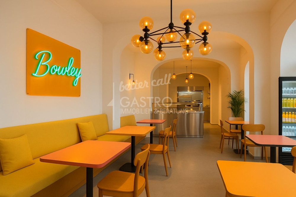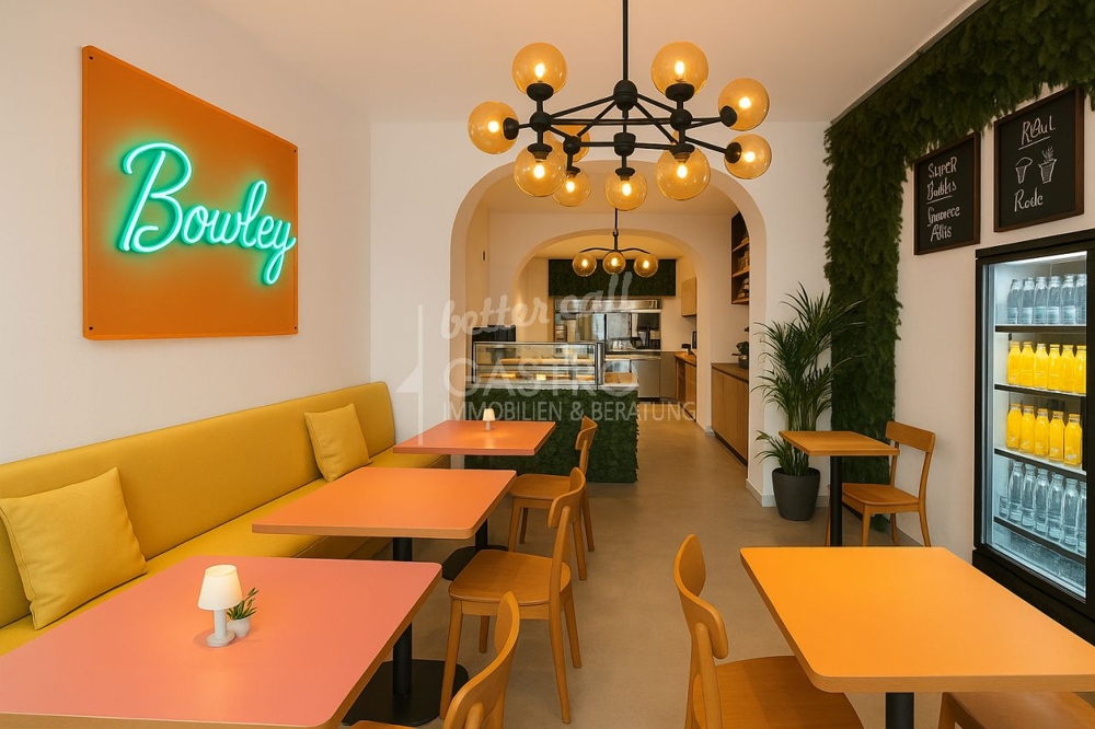 Exklusive Chance auf der Kantstraße - Tagescafe & To go Konzepte möglich Die angebotene Fläche umfasst 79,50 m² und präsentiert sich als stilvolle, kompakte Gastronomieeinheit mit klarer Raumstruktur und hoher Anziehungskraft. Der offene Gastraum bietet durch die großzügige Fensterfront nicht nur maximale Sichtbarkeit, sondern auch ein angenehm lichtdurchflutetes Ambiente, das sich ideal für moderne, designorientierte Konzepte eignet. Die Fläche verfügt über eine funktionale Teilküche, die sich perfekt für leichte, frische und schnelle Food-Formate eignet. Ein klassischer Küchenabzug ist nicht vorhanden, weshalb das Objekt besonders für Konzepte ohne starke Geruchsentwicklung – wie Bowls, Salate, Bakery, Coffee-Shop-Modelle, Smoothie- oder Juice-Bars sowie hochwertige To-Go-Konzepte – attraktiv ist. Dank des gut geschnittenen Grundrisses und der effizienten Arbeitswege lässt sich der Betrieb mit schlanken Prozessen organisieren. Die Größe macht das Objekt besonders spannend für Betreiber, die ein wirtschaftlich optimiertes, trendaffines Konzept realisieren möchten – ob als erstes eigenes Projekt, Filialerweiterung oder Marken-Launch in einer dynamischen, urbanen Umgebung. Eine Betriebs- und Inventarübernahme ist erforderlich. Den Kaufpreis hierzu erfahren Sie gern auf Anfrage. Wir weisen darauf hin: Das vorliegende Exposé vermittelt in knapper Form die wesentlichen Eckdaten des Objektes, die wir vom Eigentümer/Inhaber erhalten haben. Um jedoch einen umfassenden Eindruck zu bekommen, ist eine Besichtigung mit uns sowie das gemeinsame Gespräch mit dem Eigentümer der Liegenschaft beziehungsweise mit den Geschäftsinhabern ratsam. Um die Potenziale dieser Fläche greifbar zu machen, zeigen die Beispielbilder ein mögliches gastronomisches Konzept in stimmungsvoller Umsetzung. Diese Visualisierungen sind illustrativ und sollen eine Vorstellung davon vermitteln, welches Ambiente hier realisiert werden könnte. Die gezeigten Personen sind keine echten Gäste, sondern Statisten, die das gewünschte Flair unterstreichen.Ausstattung