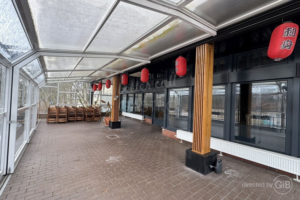 Besonders hervorzuheben ist die überdachte, großzügige Terrasse, die zusätzliche Nutzfläche schafft und vielfältige Nutzungsmöglichkeiten eröffnet – ganzjährig oder saisonal. Die Immobilie eignet sich ideal für Gastronomen, die Wert auf Produktionsmöglichkeiten, gute Erreichbarkeit und ausreichend Stellplätze legen und ein eigenständiges Objekt mit Entwicklungspotenzial suchen.