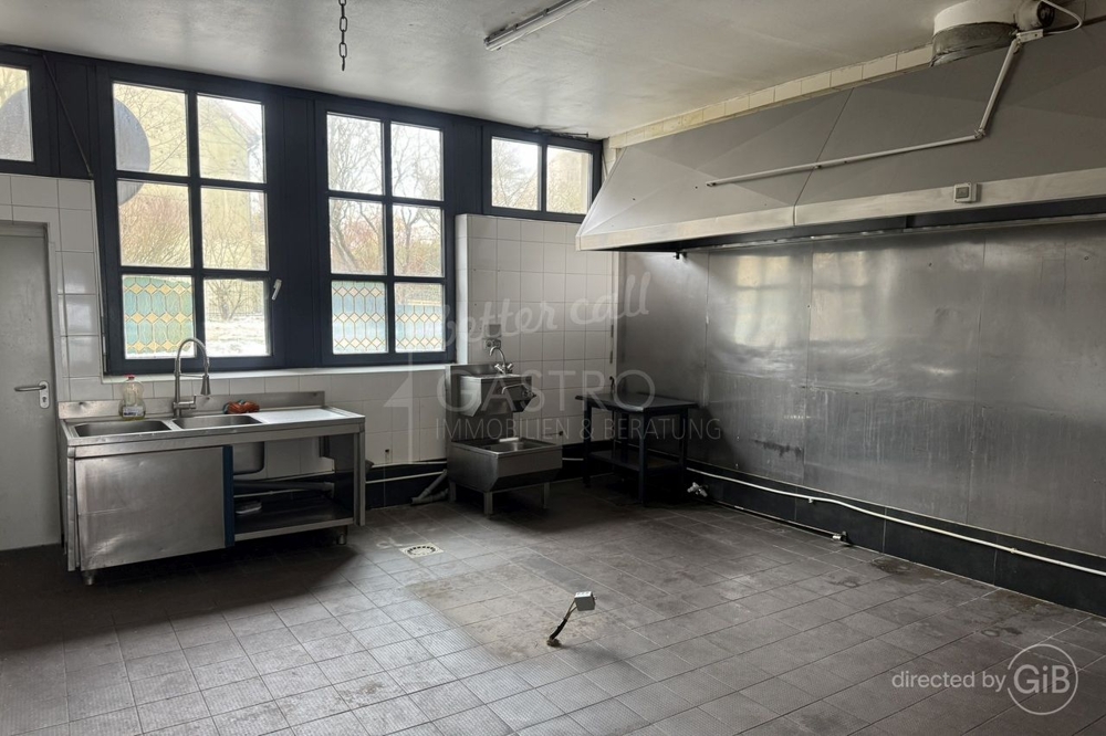 Produktionsgeeignete Gastronomie-Gewerbefläche mit großzügiger Terrasse und ParkmöglichkeitenDiese freistehende Gastronomieimmobilie überzeugt durch ihre markante Präsenz, eine ebenerdige Erschließung sowie ein weitläufiges Grundstück mit komfortabler Parkplatzsituation. Der großzügige Gastraum mit durchgehender Fensterfront, integrierter Bar und separatem Küchenbereich bietet optimale Voraussetzungen für Restaurantbetrieb, Catering, Eventgastronomie oder Produktionsküche. Die vorhandene Abluftanlage sowie die bereits installierten technischen Vorrichtungen bieten eine sehr gute Grundlage für den Einbau einer individuellen Gastronomieküche.
