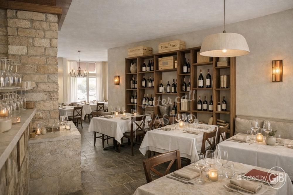 Der bestehende Theken- bzw. Barbereich ist funktional angeordnet und fügt sich logisch in den Grundriss ein. Die Fläche eignet sich für vollwertige Restaurantkonzepte ebenso wie für abendorientierte Formate mit Bar- und Weincharakter. Die vorhandene Struktur unterstützt einen reibungslosen Betriebsablauf.
