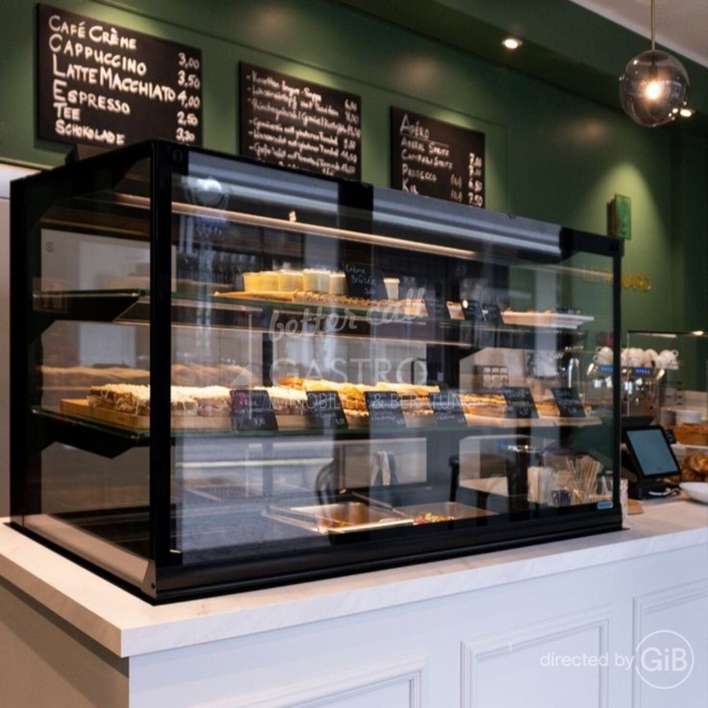 Die Fläche verfügt über eine voll ausgestattete Thekenanlage mit integrierter Kühlvitrine, separater Kuchenvitrine sowie vorbereiteter Kaffee- und Ausgabestation. Die offene Teilküche ist funktional angeordnet und mit Edelstahl-Arbeitsflächen, innenliegender Abluftführung sowie entsprechenden Anschlüssen für gastronomische Geräte ausgestattet. Eine Getränke-Kühlvitrine im Gastraum, ein durchdachtes Beleuchtungskonzept mit modernen Pendelleuchten sowie ein zeitgemäßer Bodenbelag sind vorhanden. Separate Damen- und Herren-WCs stehen zur Verfügung. Der Gastraum ist möbliert mit massiven Holztischen, gepolsterten Stühlen und ergänzenden Sideboards. Großzügige Fensterflächen sorgen für viel Tageslicht und eine einladende Atmosphäre. Zusätzliche Lagerkapazitäten befinden sich im ca. 55 m² großen Kellerbereich direkt unter der Einheit. Aufgrund der Raumstruktur, der bestehenden Kücheninfrastruktur sowie der Flächenaufteilung eignet sich das Objekt nicht nur für Café- und Frühstückskonzepte, sondern ebenso für ein vollwertiges Restaurant im Tages- oder Abendbetrieb. GiB *Lage