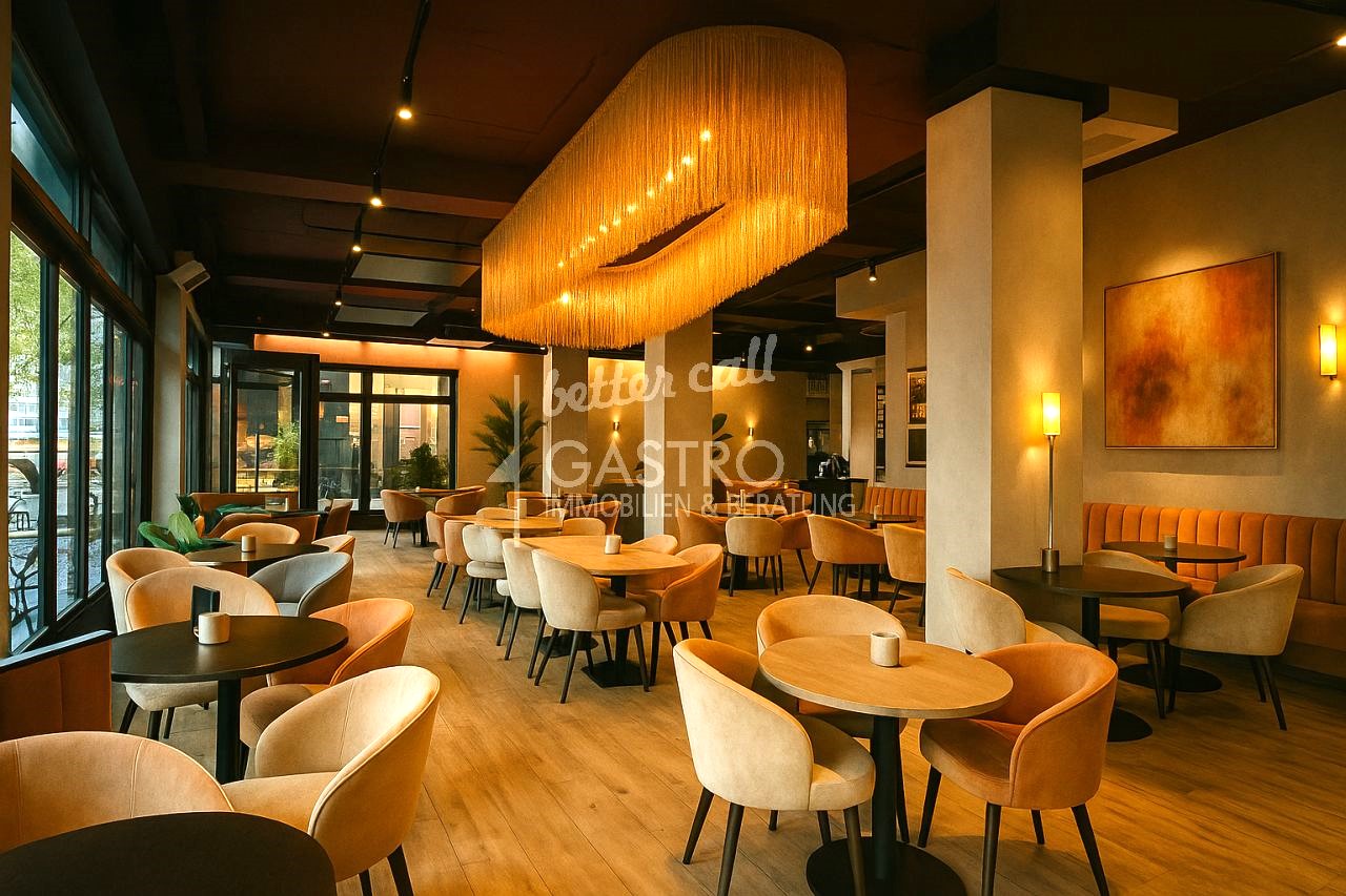 Rund 100 m² Fläche, viel Licht und ein klarer Grundriss - dideal für ein modernes Cafe-, Brunch- oder Tagesbar-Konzept. Großzügige Fensterfronten verbinden urbanen Flair mit gemütlicher Atmosphäre.
